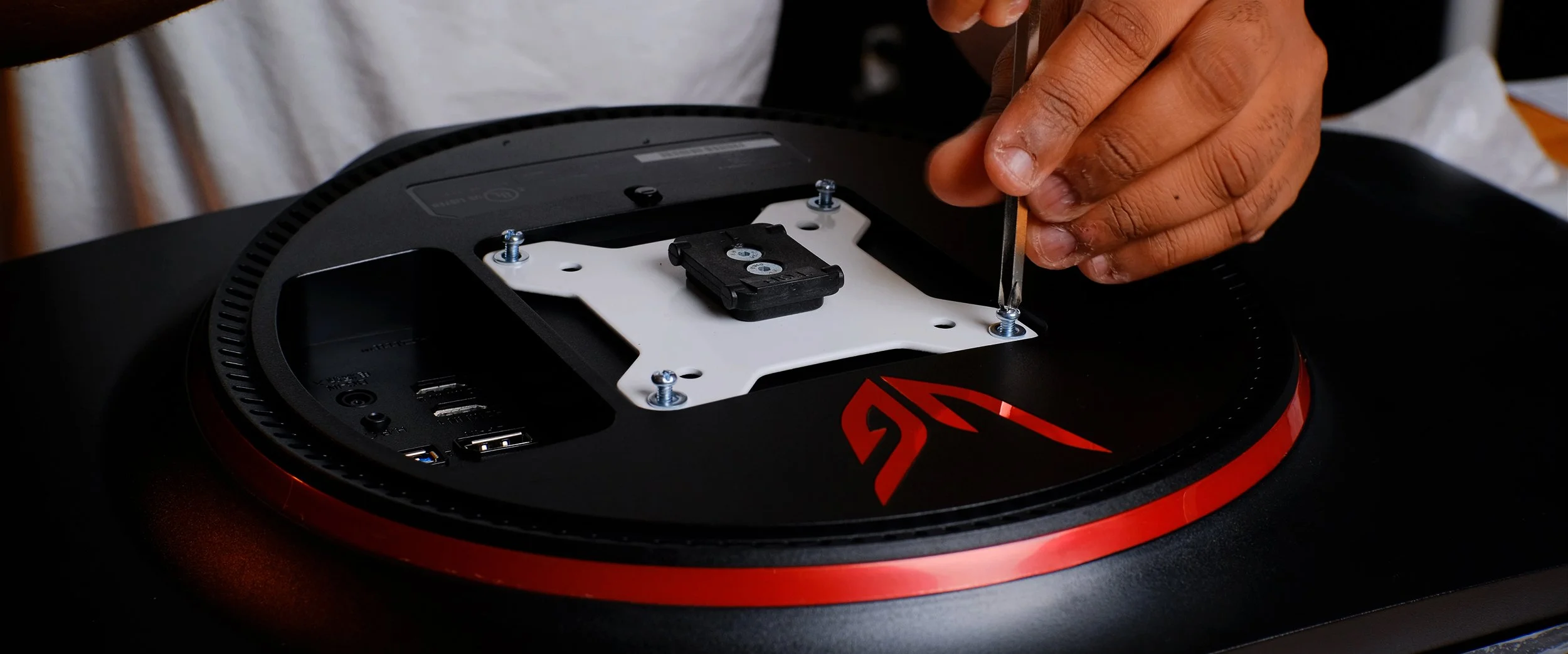The next logical step was to add the VESA mount plate to the back of my LG 34GP83A-B.