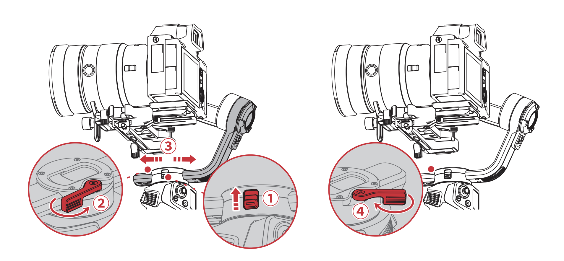 Remember, when you’re close to being balanced, less is more. When pushing the Pan Axis inward or outward from the latching base, make micro-adjustments.