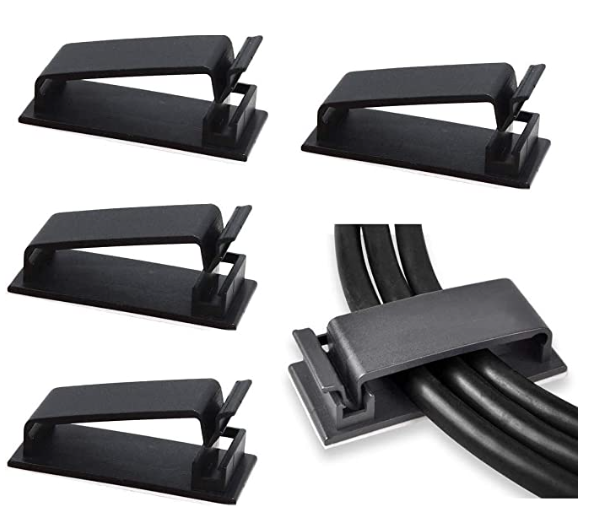 Pros: strong adhesive, can fit multiple wires, cover clips and stays in place